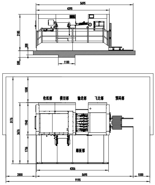 | 整機尺寸 | 5695×3676×2185mm(L×W×H)(長含預(yù)上紙軌道;寬含腳踏板) |