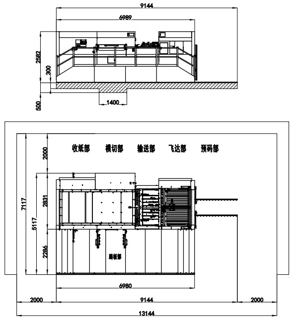 | 整機(jī)尺寸 | 6440×4256×2350mm (長含預(yù)上紙軌道;寬含腳踏板) | 8276×4506×2467mm (長含預(yù)上紙軌道;寬含腳踏板) | 8033×4688×2435mm (長含預(yù)上紙軌道;寬含腳踏板) | 8546×4706×2452mm (長含預(yù)上紙軌道;寬含腳踏板) | 9144×5117×2582mm (長含預(yù)上紙軌道;寬含腳踏板) |