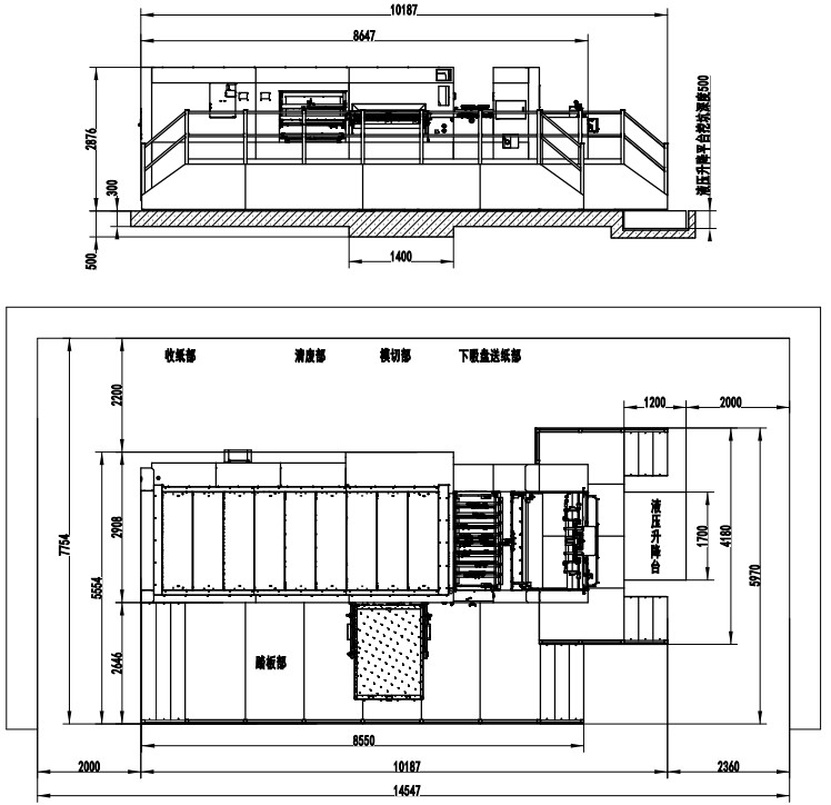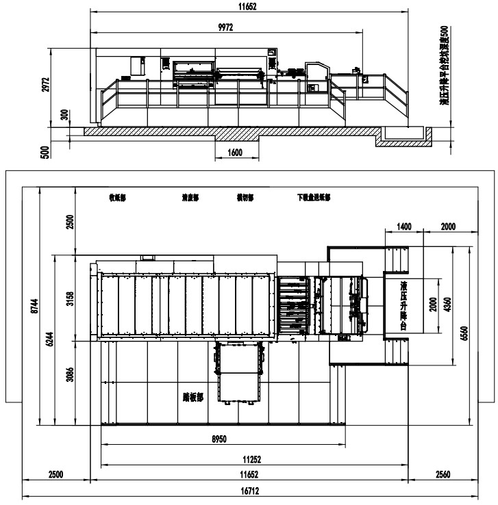 | 整機尺寸(卷簾式收紙) | 9887×5500×2800mm(L×W×H)(寬含腳踏板) | 10187×5970×2876mm(L×W×H)(寬含腳踏板) | 11652×6560×2972mm(L×W×H)(寬含腳踏板) | 14370×7160×2972mm(L×W×H)(寬含腳踏板) |