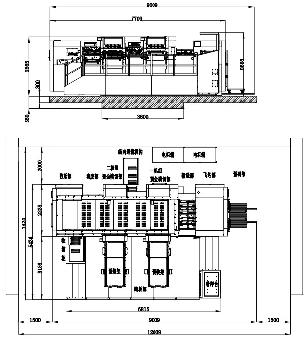 | 整機尺寸(含板框預裝架) | 9009×7424×2658mm(L×W×H) (長含預上紙軌道;寬含腳踏板) |