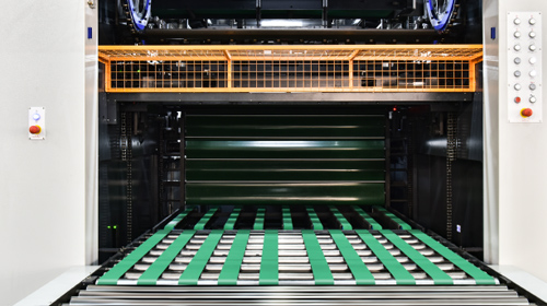 ● Front edge waste removal system removes and transfers waste edge outside the machine via conveyor belt.