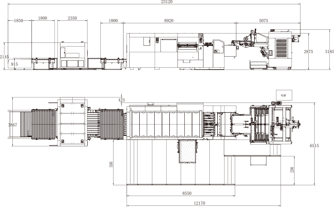 | Machine Dimensions(Batch Delivery Conveying) | 11400×5500×2800mm(L×W×H) (L: paper prepared track included, W: platform included) | 12049×5970×2876mm(L×W×H) (L: paper prepared track included, W: platform included) | 13690×6560×2972mm(L×W×H) (L: paper prepared track included, W: platform included) | 15870×7160×2972mm(L×W×H) (L: paper prepared track included, W: platform included) |