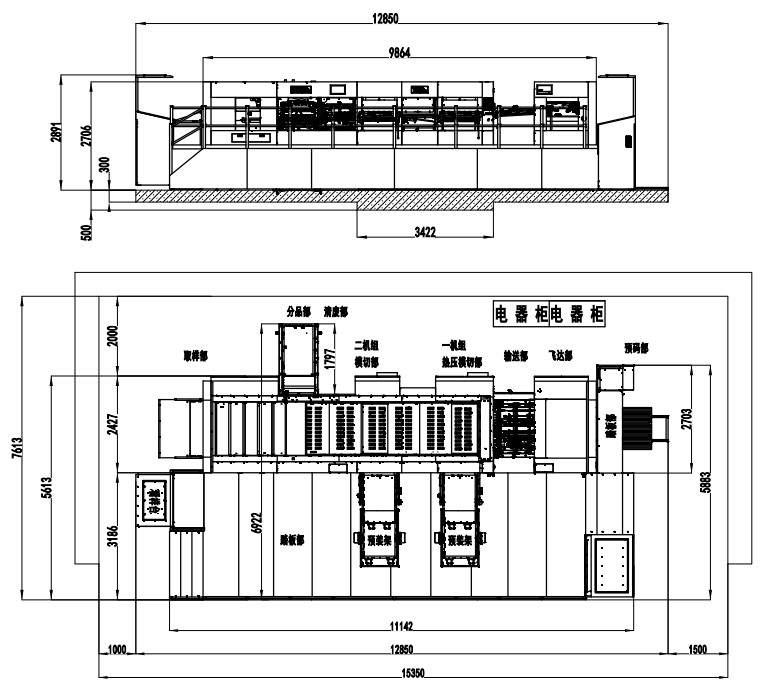 | Machine Dimensions (Including Die Preloader) | 12850×7613×2891mm(L×W×H) (L: paper prepared track included, W: platform included) |